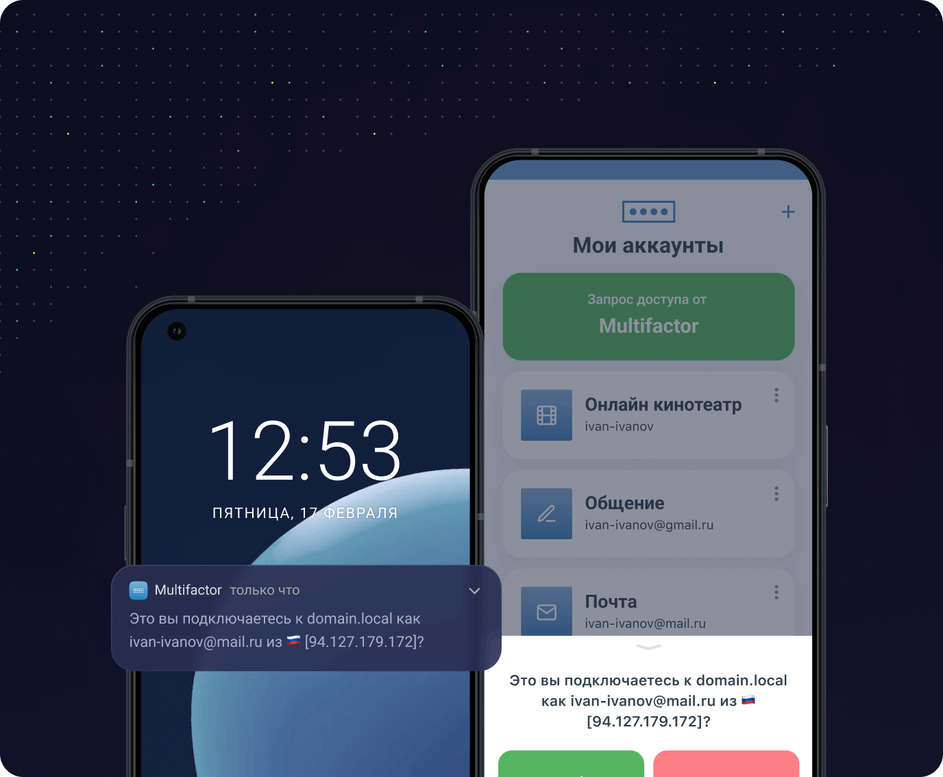 Продукт нативно интегрирован с лучшим в классе поставщиком многофакторной аутентификации — MULTIFACTOR, что позволяет отказаться от дополнительных модулей и адаптеров. Все что нужно — уже внутри!